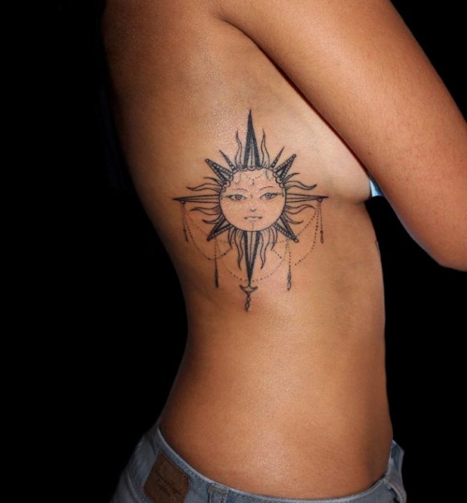 Un tatouage sur les côtes sera beau à l'avant comme à l'arrière. La principale condition est qu'il doit s'harmoniser avec le reste des tatouages existants. Le tatouage peut commencer directement sur les côtes et se déplacer de manière fluide vers le ventre, le dos, les hanches et les fesses. Le côté sur lequel se trouve le tatouage n'a pas d'importance. Mais si vous avez choisi une mascotte de tatouage, il existe certaines restrictions quant au choix du côté de l'image. Selon les règles religieuses, le côté gauche représente le mal et la négativité et le côté droit représente la bonté et la force. Mais il y a des exceptions à toutes les règles. Par exemple, l'image d'un dauphin sur le côté gauche représente la loyauté et le dévouement. Le tatouage yin-yang sur le côté droit représente la sagesse et la capacité à percer les mystères du destin.
