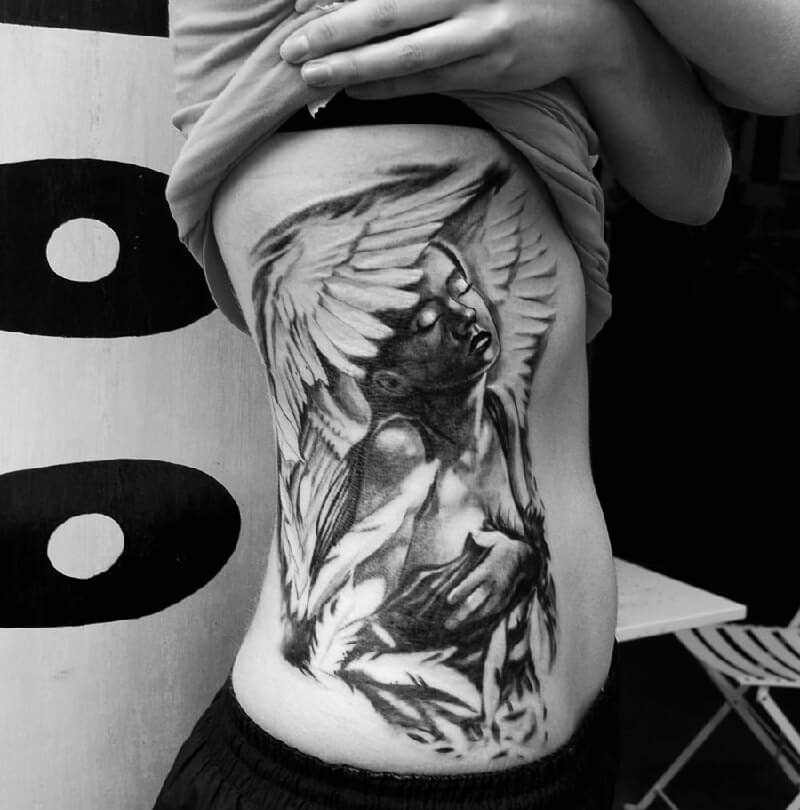 - Un espace plus large pour un tatouage. Comme vos côtes sont plus larges que n'importe quelle autre partie de votre corps, vous pouvez certainement choisir le motif qui vous plaît sans faire attention à sa taille.