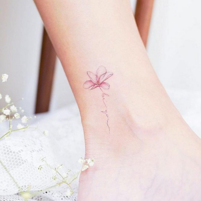 Ces motifs sont choisis par des personnes sensuelles. Un dessin de plante ou de fleur a la signification de l'amour et de la tendresse. Moins il y a de lignes dans l'esquisse, plus le tatouage est beau.