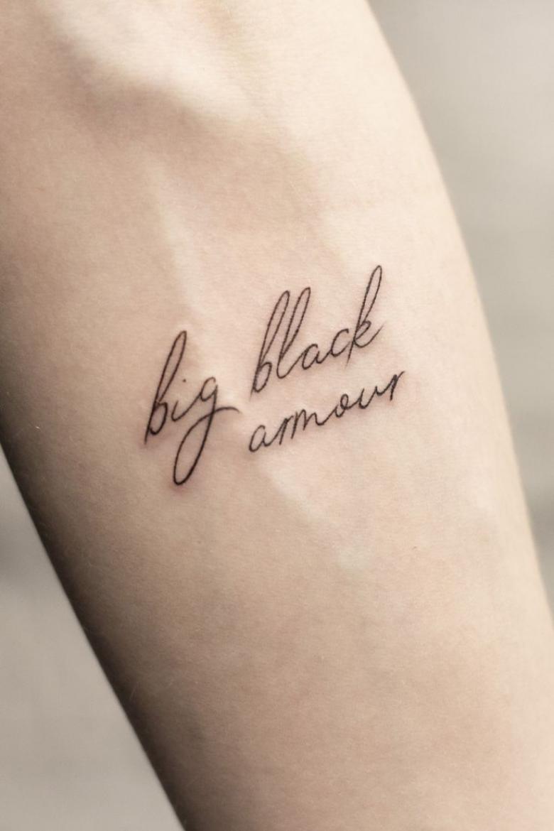 Souvent, le motif est porteur d'une signification philosophique ou d'une fonction de motivation. Une petite inscription semble délicate sur la clavicule d'une femme. La bonne police de caractères joue un rôle important. La légèreté et la tendresse en dépendront. Un tatouage aux lignes fines prend une allure aérienne.