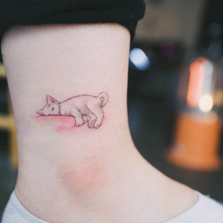 Tatouage de cheville avec un symbole yin yang en forme de chat