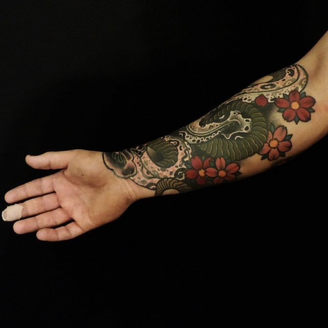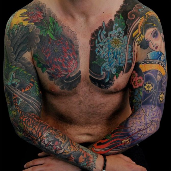 C'est intéressant ! Le tatouage moderne et populaire "en manche" nous est venu précisément du Japon. Elles ont d'abord été utilisées par les samouraïs japonais, dont les vêtements n'avaient pas de manches. Dans ce cas, les tatouages servaient de symbole de force et d'héroïsme, incarnaient la lutte contre le mal et la capacité à réaliser un exploit sans craindre de mourir.
