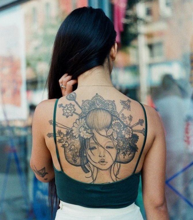 Avant de choisir une esquisse du futur tatouage, vous devez déterminer le type d'image et le type de tatouage. Il est bon de rappeler que tous les dessins ont une signification spécifique et une explication logique qui s'inscrit dans l'histoire. Les tatouages japonais sont très artistiques et beaux, ils sont donc porteurs de beaucoup de sens. La principale caractéristique du tatouage japonais est sa grande valeur artistique. Si un grand dessin est utilisé pour créer un tatouage, toutes les parties du corps doivent être couvertes, tous les espaces vides étant remplis d'inscriptions, d'ornements et d'autres symboles pour compléter l'aspect mystique de l'énorme composition.