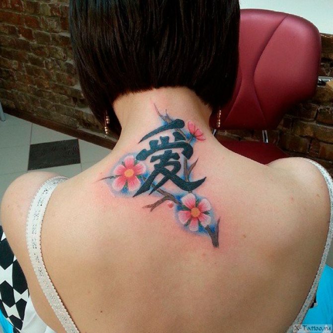 Selon les statistiques, l'endroit le plus courant pour se faire tatouer des caractères chinois est le cou. Je pense que beaucoup ont rencontré des personnes avec un symbole d'horoscope chinois imprimé à cet endroit. Sur la tête elle-même, il est possible de rencontrer rarement de tels tatouages. La seule exception est l'endroit préféré des femmes - derrière l'oreille.