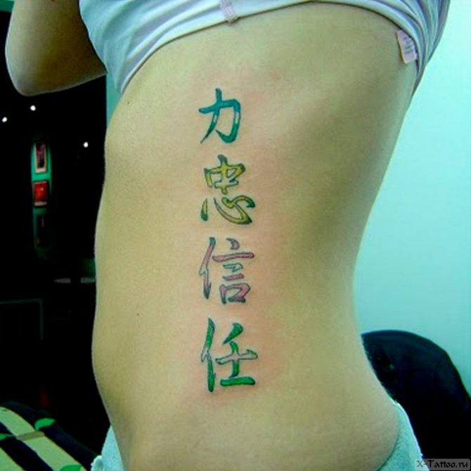 En tout cas, le nombre de ces personnes est assez important, tant chez les hommes que chez les femmes. Si vous êtes l'un d'entre eux, cet article est fait pour vous. Nous parlerons ici de la signification de différents hiéroglyphes, les traduirons en russe et montrerons des exemples de tatouages prêts à l'emploi sur toutes les parties du corps.