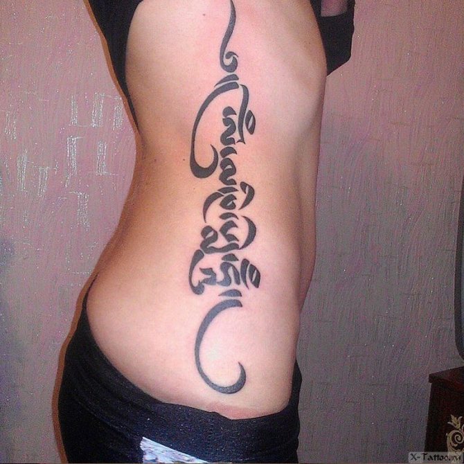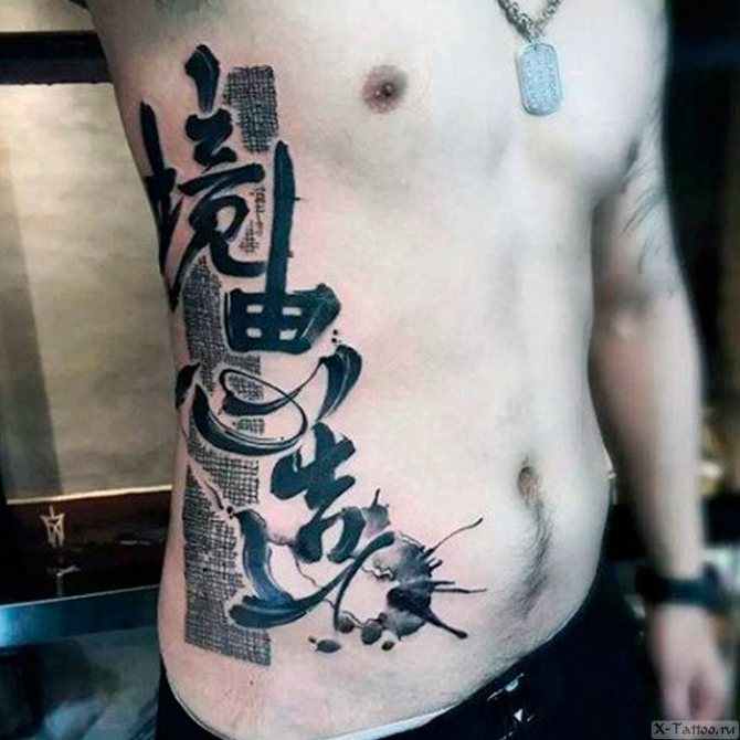 Sur le torse, l'emplacement d'un tatouage dépend généralement du sexe. Les filles préfèrent avoir leurs hiéroglyphes sur leurs clavicules, sous leurs seins ou sur leurs côtés et leurs côtes. Ce dernier, d'ailleurs, est l'endroit idéal pour une grande citation ou une longue phrase intelligente, dont vous ne connaissez que la signification en russe.