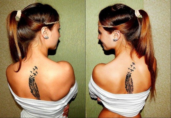 En outre, les tatouages légers sont également très demandés. La gracieuse plume indienne représente le courage, un symbole de la vie. Dans une interprétation moderne, une femme s'efforce d'acquérir les qualités d'un oiseau libre.