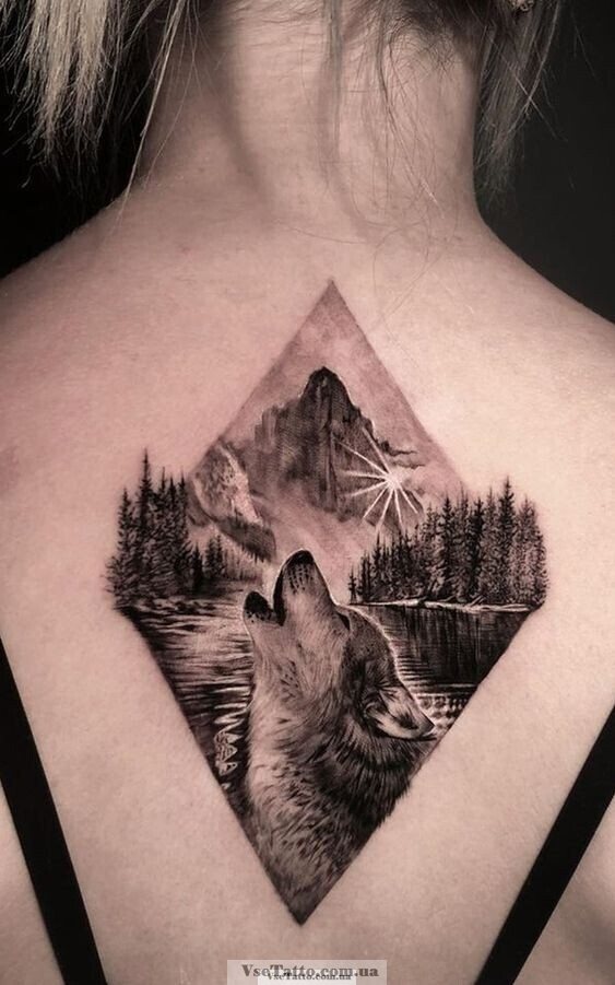 Les hommes préfèrent se faire tatouer sur toute la surface du dos ou sur les omoplates. Une option populaire en 2021 est celle où l'image se fond dans les parties adjacentes du corps - cou, épaules, côtés. Les photos avec de telles compositions à grande échelle sont spectaculaires et, sans exagération, un chef-d'œuvre.