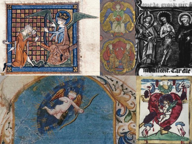 Κατά τον Μεσαίωνα η εικονογραφία του Θεού της Αγάπης, ενός μακρινού απογόνου του αρχαίου Έρωτα, άρχισε να μοιάζει με την εικόνα του Χριστού χάρη στη διάδοση της εικόνας του στις καλές επιστολές (για παράδειγμα, στο Ρομάντσο του Ρόδου του 13ου αιώνα).