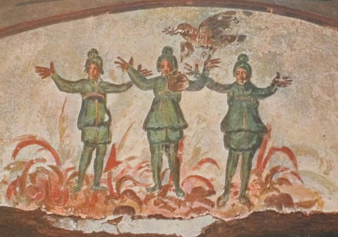 Κάποια στιγμή οι δύο αυτές εικόνες συγχωνεύτηκαν στην άποψη των θεολόγων σε τέτοιο βαθμό ώστε η σκηνή της ουράνιας μεσιτείας του Αρχαγγέλου Μιχαήλ για τους τρεις νέους στο καμίνι της φωτιάς να απεικονίζει ένα περιστέρι αντί για ένα ανθρωπόμορφο ον. Στην εμφάνισή τους οι άγγελοι γίνονταν όλο και περισσότερο όμοιοι με τον Θεό και "απομακρύνονταν" από τον άνθρωπο.
