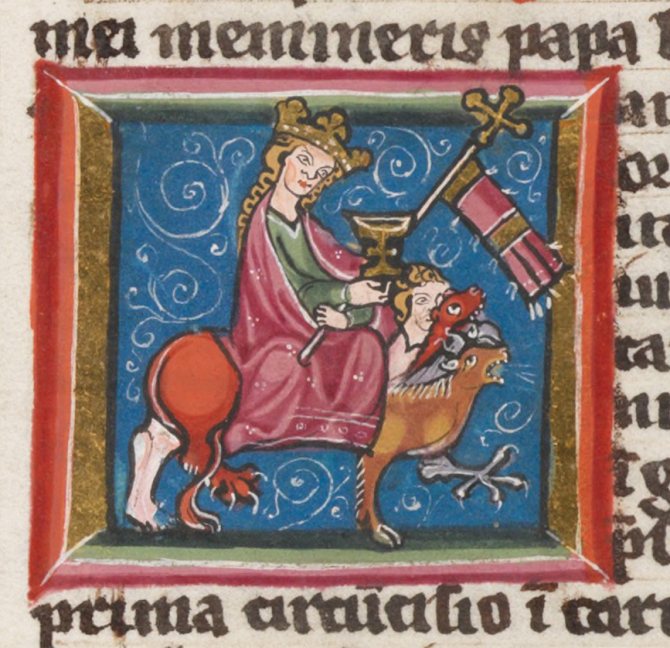 Από τον δωδέκατο αιώνα και μετά, τέτοια θεϊκά τέρατα αντιπαραβάλλονταν μερικές φορές με διαβολικά τέρατα, όπως το θηρίο με τα επτά κεφάλια και τα δέκα κέρατα, το οποίο χρησιμεύει ως θρόνος για την πόρνη Βαβυλώνα στην Αποκάλυψη του Ιωάννη του Θεολόγου. Έτσι, εμφανίζεται μια αλληγορική απεικόνιση της Εκκλησίας, καβάλα στο τετράμορφο - ένα υβρίδιο ανθρώπου, λιονταριού, μοσχαριού και αετού. Στο πλαίσιο αυτό, συμβολίζει τις μαρτυρίες των τεσσάρων Ευαγγελίων, πάνω στις οποίες βασίζεται η χριστιανική διδασκαλία.
