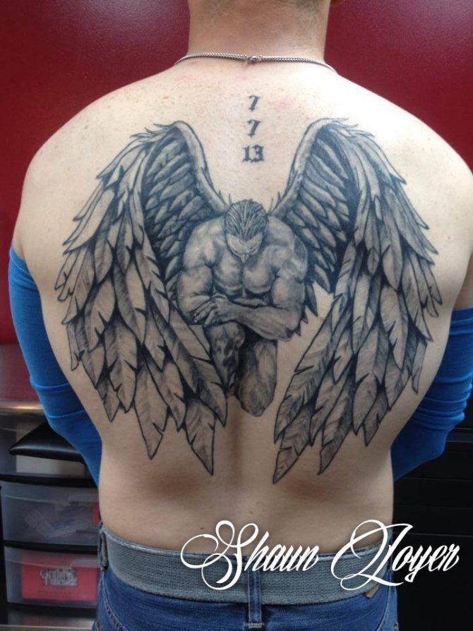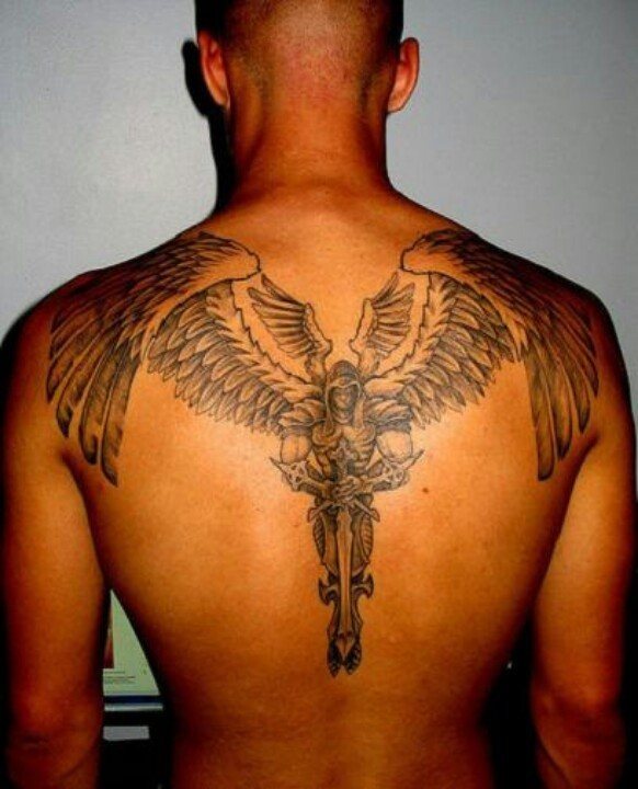 Ίσως ο άντρας επιλέγει αυτό το τατουάζ επειδή θέλει υποστήριξη από τον φύλακα άγγελό του. Μερικές φορές τα μέλη του ισχυρού φύλου προτιμούν πρωτότυπα body art με αρχαγγέλους, όχι λόγω κάποιου ιδιαίτερου συμβολισμού, αλλά επειδή πραγματικά φαίνονται πολύ όμορφα.