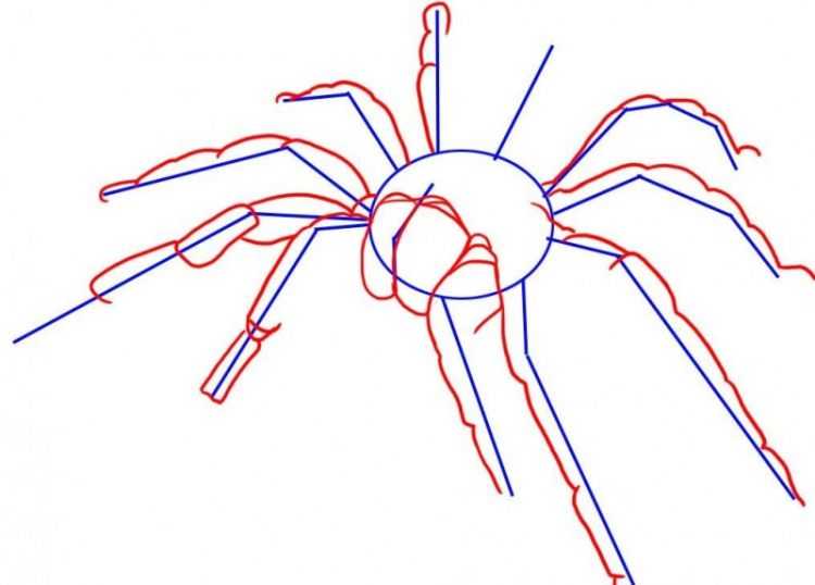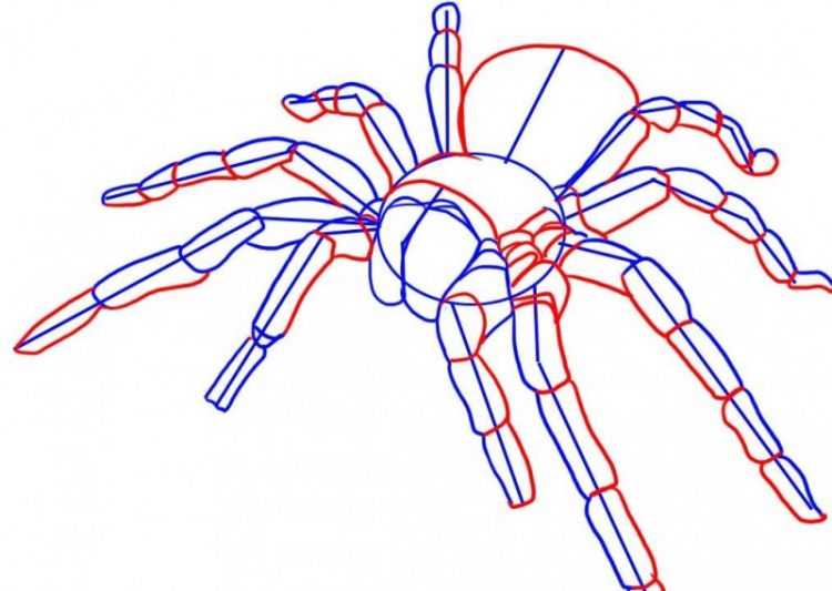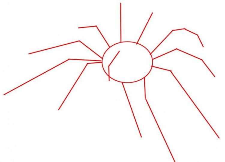 Αν θέλετε, μπορείτε να εμφανίσετε τα μάτια στο κεφάλι. Σχεδιάστε επίσης 8 πατούσες, από τις οποίες το μπροστινό ζευγάρι πρέπει να είναι το μεγαλύτερο και να κοιτάζει προς το κεφάλι.