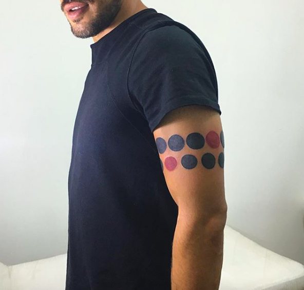 Θεαματικό τατουάζ με πολύχρωμους κύκλους.