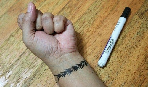 - Αφήστε το δέρμα να στεγνώσει, πάρτε ένα στυλό και χαράξτε το περίγραμμα του τατουάζ,