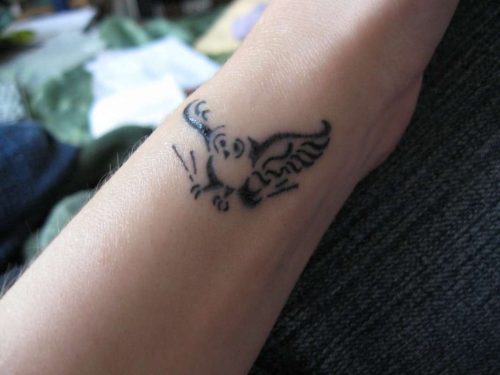 Συχνά τα αγόρια σχεδιάζουν δροσερά τατουάζ στο χέρι με ένα μαύρο στυλό με τη μορφή σημείων, επιγραφών, μυθικών χαρακτήρων, ζώων, επιλέγοντας την περιοχή του αντιβραχίου. Η προβολή της εικόνας καθιστά σαφές στους άλλους - το άτομο αυτό τα χρησιμοποιεί για να εκφραστεί. Τα αγόρια έχουν επίσης τατουάζ με το σχήμα ενός μήνα, ενός αετού που πετάει, ενός γυναικείου προσώπου με ένα περιστέρι.