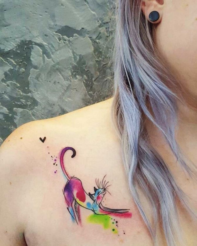 Ενδιαφέρον γεγονός: τα τατουάζ ακουαρέλας είναι ένα από τα πιο απαιτητικά είδη στον κόσμο της τέχνης του σώματος, που ιδρύθηκε από την γεννημένη στις ΗΠΑ Amanda Vachob.