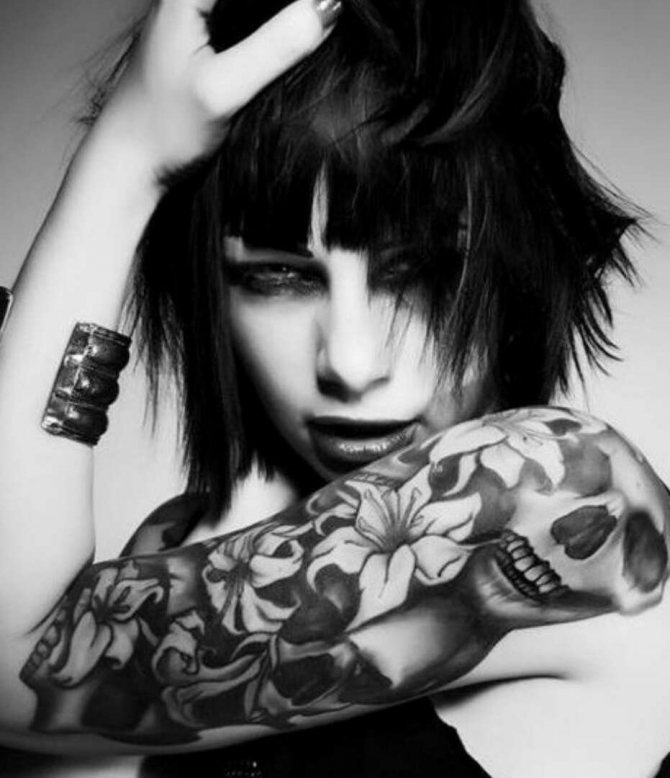 Οι γυναίκες οπαδοί της σκληρής μουσικής ή τα θηλυκά μέλη ορισμένων υποκουλτούρων επιλέγουν συχνά σχέδια με νεκροκεφαλές και παρόμοια σύμβολα.