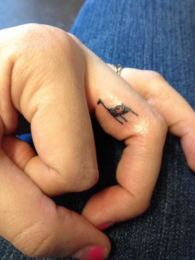 Τα τατουάζ στα δάχτυλα για τα κορίτσια δεν χρειάζεται να είναι αυστηρά και περιεκτικά. Το ζώο μπορεί να είναι ένα υπαρκτό ζώο, όπως μια αλεπού ή ένας λύκος, ή ένα μυθικό φανταστικό ζώο. Τα τατουάζ με ψάρια και πουλιά αποτελούν ξεχωριστή ομάδα.