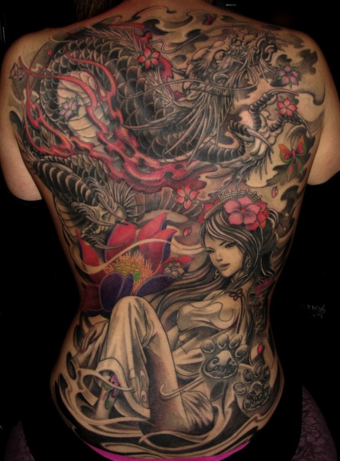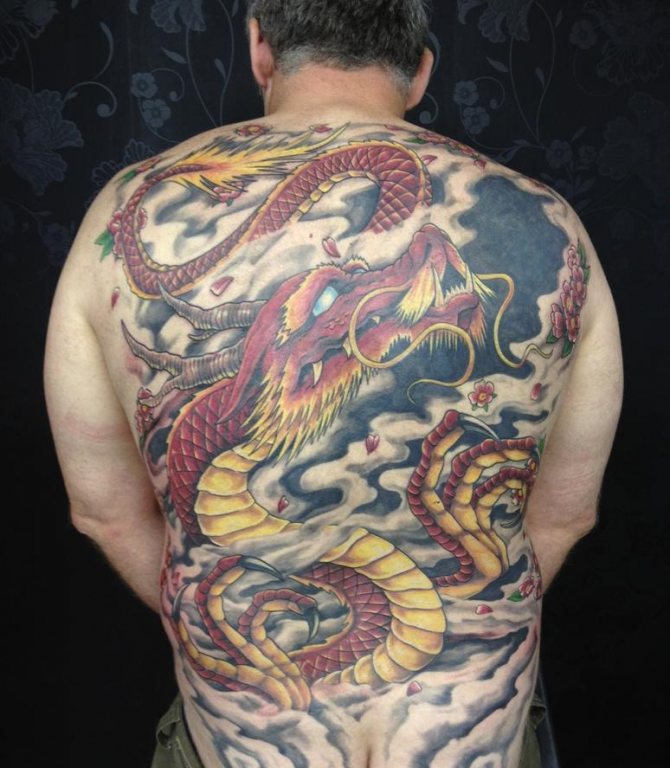 Τατουάζ με τη μορφή ανατολίτικου. Το πιο δημοφιλές στυλ τατουάζ για άνδρες. Μπορείτε εκατό τοις εκατό τουλάχιστον μία φορά, αλλά είδε πώς στην πλάτη ενός ανθρώπου απεικονίζει ένα όμορφο δράκο. Αυτό το σύμβολο υποδηλώνει την αρσενική ενέργεια και τις μεγάλες δυνατότητες. Αυτός ο άνθρωπος είναι έτοιμος να κάνει τα πάντα για να πετύχει τους στόχους του.