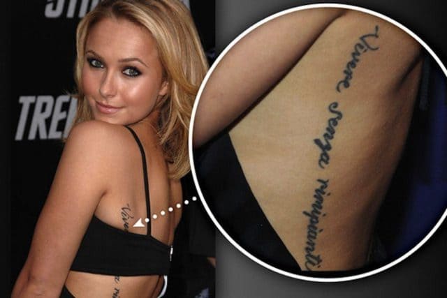 Η ντίβα του Χόλιγουντ Hayden Panettieri έχει ένα τατουάζ που εκτείνεται από το αντιβράχιο της μέχρι την πλάτη της. Η ιταλική επιγραφή "Ζωή χωρίς τύψεις" είναι ανορθόγραφη.
