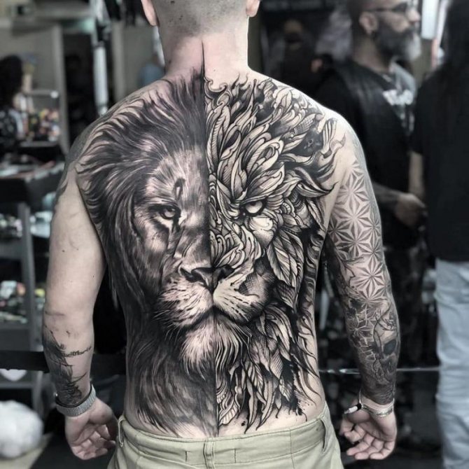 Ένας δάσκαλος τατουάζ δεν καλείται να κάνει ένα "αρσενικό ή θηλυκό τατουάζ στην πλάτη μου". Το παράδοξο είναι ότι μπορείτε να κάνετε οποιοδήποτε είδος τατουάζ στην πλάτη σας. Θα γίνει αντιληπτό ως αναπόσπαστο μέρος με την ερμηνεία του φύλου. Η εικόνα του κεφαλιού ενός άγριου μυθικού θηρίου στην πλάτη ενός άνδρα συνδέεται με την αποφασιστικότητα, το θάρρος. Αν αυτό το ζώο κοσμεί ένα κορίτσι, θεωρείται ως υπόσχεση ενός ρομαντικού παραμυθιού σε μια σχέση.