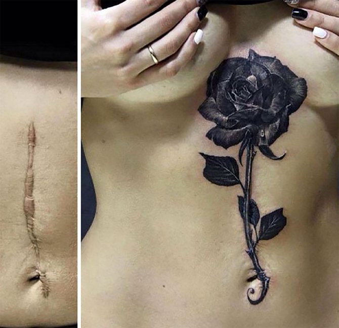 Ανάλογα με το πού ακριβώς βρίσκεται η ουλή, μπορείτε να "μετακινήσετε" το σκίτσο του τατουάζ και να το δοκιμάσετε με τον καλλιτέχνη. Τα λουλουδάτα μοτίβα είναι δημοφιλή αλλά όχι τετριμμένα: φαίνονται πραγματικά όμορφα και θηλυκά. Επιπλέον, ένας ικανός δάσκαλος μπορεί να σας σχεδιάσει ένα σκίτσο που δεν έχει κανένα άλλο κορίτσι.