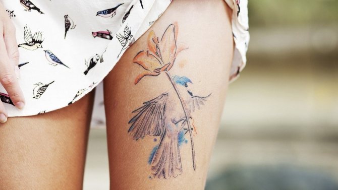 Τατουάζ για κορίτσια στο ισχίο: μοτίβα, λουλούδια, επιγραφές, ο δράκος και η σημασία τους