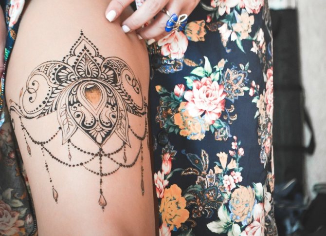 - Οι μηροί - Ένα τέλειο εύρημα για όσες αγαπούν τα δαντελωτά εσώρουχα. Επιπλέον, αυτό το τατουάζ είναι ιδιαίτερα ελκυστικό για τους άνδρες.