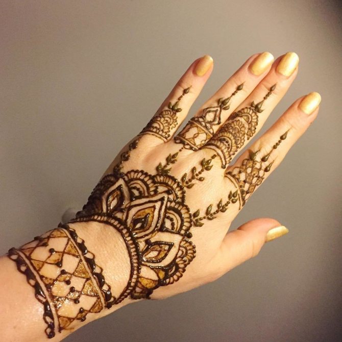- mehendi - ένα εξαίσιο μοτίβο ινδικού στυλ. Οι ντόπιοι της χώρας είναι πεπεισμένοι για την απίστευτη δύναμη των περίπλοκων υφαντών,