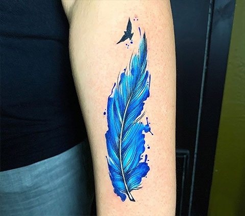 - Τατουάζ με φτερό και πουλί - Συμβολίζει την πτήση και την υψηλοφροσύνη, την ελευθερία.