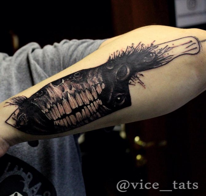 Καλλιτεχνικό τατουάζ "Επικίνδυνο μαχαίρι". Τοποθέτηση: βραχίονας