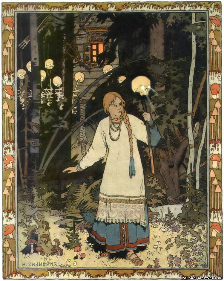 Στη ρωσική λαογραφία, υπάρχει ένα μαγικό παραμύθι που ονομάζεται "Βασιλίσα η ωραία", στο οποίο το κρανίο μουμιοποιεί τους λιχοδέκτες. Θα τολμούσα να υποθέσω ότι ο Krugloe βρήκε το συγκεκριμένο κρανίο σε αυτή την ιστορία. Και εδώ είναι η πλοκή του με λίγα λόγια.