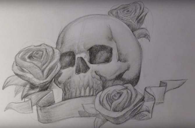 Το τελικό βήμα είναι να σχεδιάσετε τα δόντια στο κρανίο. Οι ρωγμές μπορούν να περιγραφούν στις μετωπιαίες και ζυγωματικές περιοχές. Οι ρωγμές θα δώσουν στην εικόνα του κρανίου μια φυσική εμφάνιση. Το επόμενο βήμα είναι να σχεδιάσετε τα μάτια κατά μήκος του περιγεγραμμένου κύκλου. Στο κρανίο, πρέπει να γίνει το κοίλωμα της μύτης και η λεπτομέρεια των βραχιόνων πίσω από το κρανίο.
