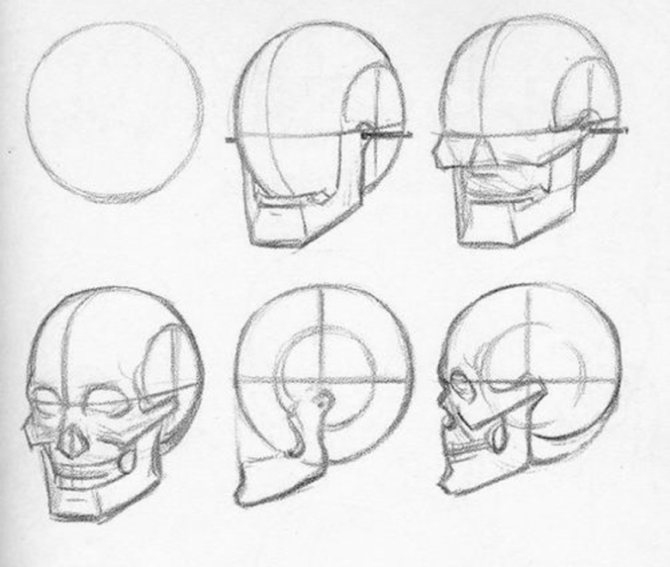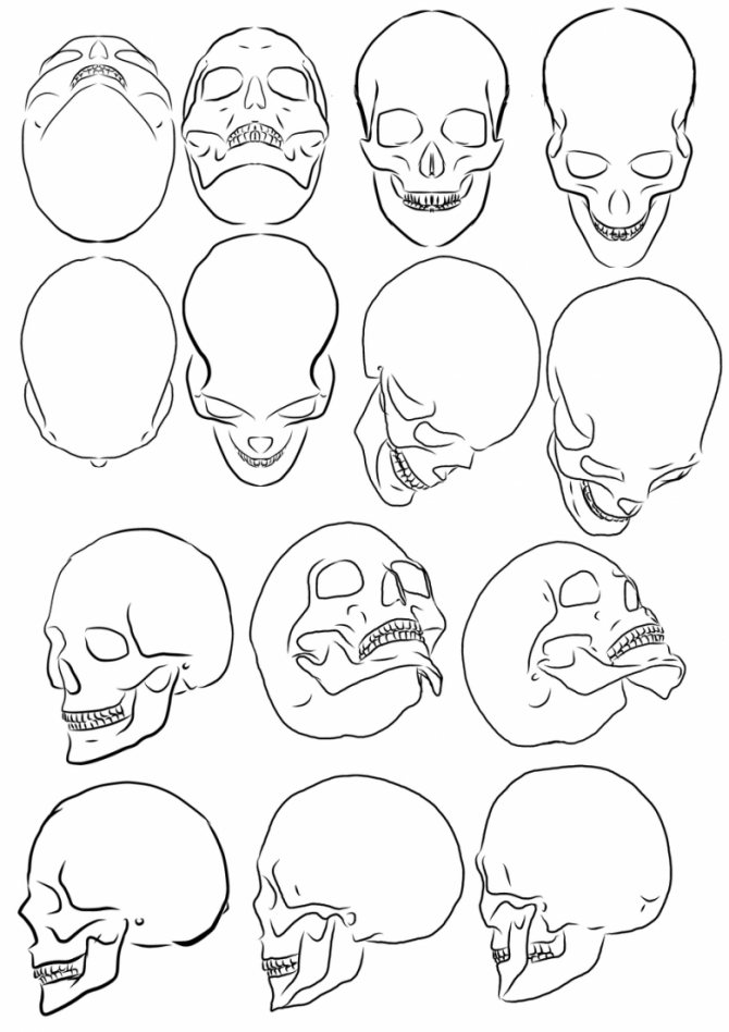 Είναι σημαντικό να περιγράψετε σωστά τα ζυγωματικά του κρανίου. Το σαγόνι περιγράφεται από τα ζυγωματικά. Τα δόντια μέσα στο στόμα του κρανίου μπορεί να είναι ομοιόμορφα ή ανομοιόμορφα. Μερικές φορές αφήνονται κενά σκόπιμα στη γραμμή των δοντιών. Συχνά οι καλλιτέχνες καταφεύγουν σε αυτό για να δημιουργήσουν μια εξωφρενική εμφάνιση. Αυτό ισχύει ιδιαίτερα για τη δημιουργία σχεδίων για δημιουργικά περιοδικά.