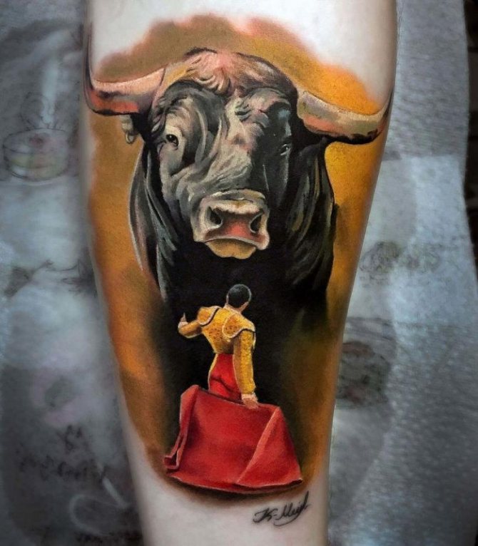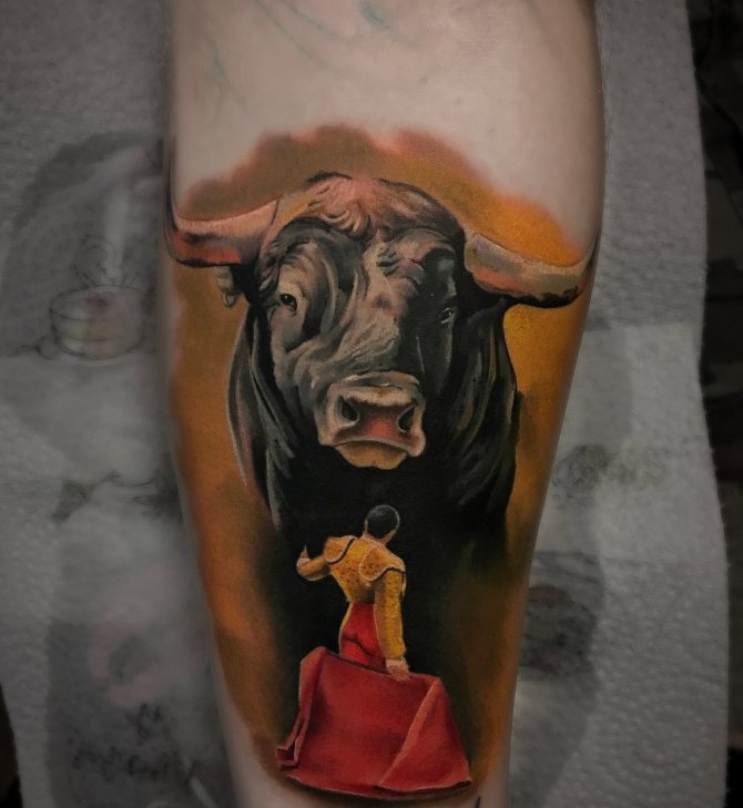 Ο ταύρος στην ταυρομαχία είναι ένας ταύρος με σέλα. Ο ταύρος σέβεται έναν ταύρο στο bullringe. Εξίσου δημοφιλής είναι και η εικόνα ενός άνδρα με κεφάλι ταύρου. Αυτό το τατουάζ είναι ένα ειδικό φυλαχτό από τις κακές δυνάμεις και δίνει στον ιδιοκτήτη του ζωτική ενέργεια, την επιθυμία για επίτευξη.