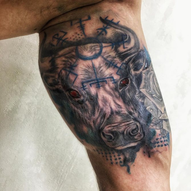 Συχνά, ο ταύρος ερμηνεύεται ως δείκτης ελέγχου, αλλά και πείσματος και συναισθηματικής ωριμότητας. Από πολλές απόψεις, αυτό είναι μια επίδειξη των βασικών χαρακτηριστικών του χαρακτήρα του ατόμου που επέλεξε να κάνει ένα τέτοιο τατουάζ.