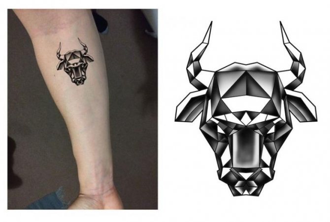 Και, φυσικά, υπάρχει και το μινιμαλιστικό στυλ. Στην περίπτωση αυτή, δεν χρησιμοποιείται συχνά. Αλλά η σιλουέτα ενός ταύρου με ένα μικρό σχέδιο φαίνεται πολύ ασυνήθιστη.
