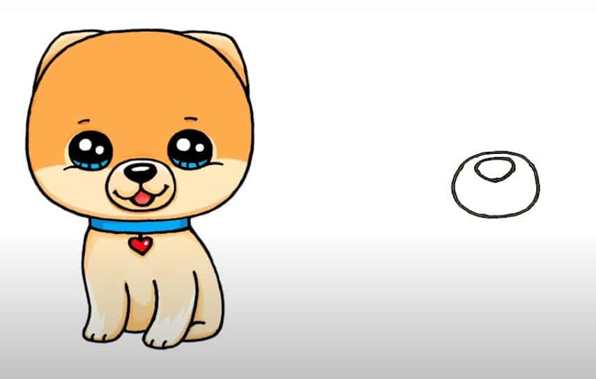 - Στη συνέχεια δημιουργείται το περίγραμμα του κάτω μέρους του κορμού του σκύλου με ένα μικρό κάθετο οβάλ που επικαλύπτει το πάνω οβάλ περίγραμμα.