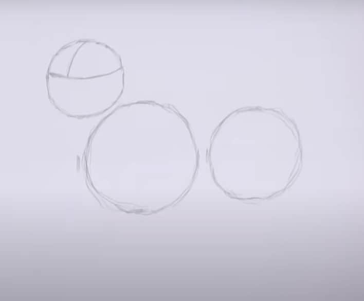 1. Πρώτα σχεδιάστε τρεις κύκλους. Δύο από αυτούς θα αντιπροσωπεύουν τον κορμό, καθώς το στήθος του σκύλου είναι μεγαλύτερο, ο πρώτος κύκλος θα πρέπει να είναι ελαφρώς μεγαλύτερος από τον δεύτερο. Ο κύκλος, που θα γίνει στη συνέχεια το κεφάλι, χωρίζεται από γραμμές.