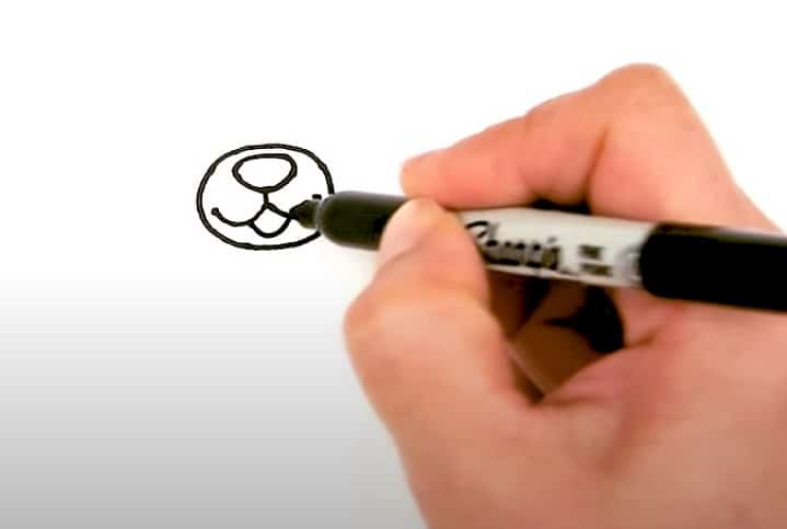 Από το κάτω κέντρο της μύτης, σχεδιάστε μια μικρή γραμμή που διακλαδίζεται σε δύο τόξα. Όταν τα χαριτωμένα μάγουλα του κουταβιού είναι έτοιμα, προσθέστε μια γλώσσα.