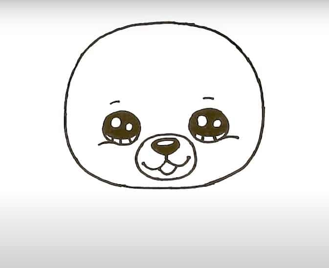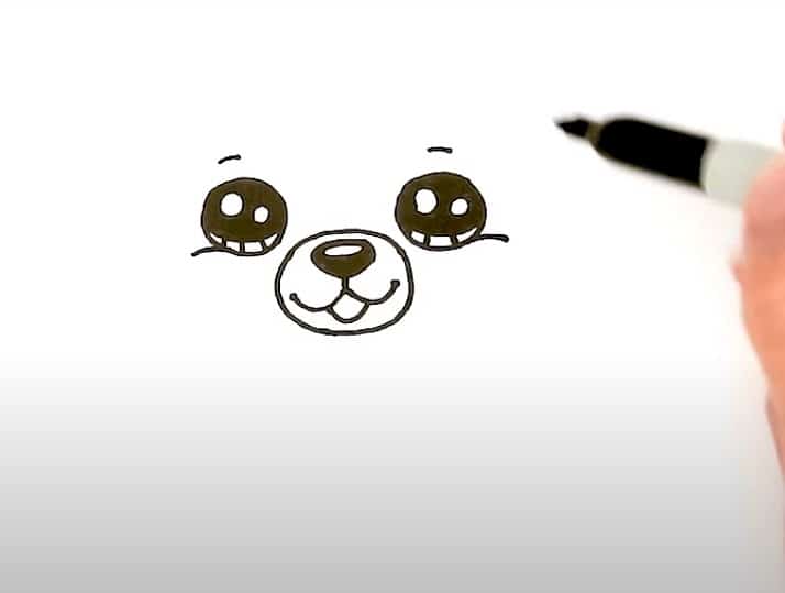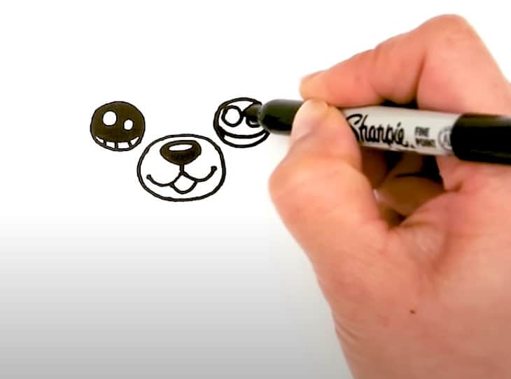 5. Σχεδιάστε έναν κύκλο, όχι έναν τέλειο κύκλο, αλλά έναν ελαφρώς πεπλατυσμένο. Μετατοπίστε τον κύκλο έτσι ώστε το σχεδιασμένο ρύγχος να είναι όσο το δυνατόν πιο χαμηλά. Το ρύγχος μοιάζει τώρα με αρκουδάκι, αλλά όλη η μαγεία είναι μπροστά.