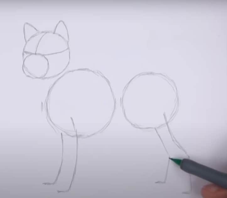- Μετά τη δημιουργία του πίσω περιγράμματος, δημιουργείται το περίγραμμα των μπροστινών ποδιών. Για να γίνει αυτό, σχεδιάζονται δύο παράλληλες γραμμές κάτω από το άνω οβάλ, οι οποίες συνδέονται με μικρά τμήματα χωριστά.