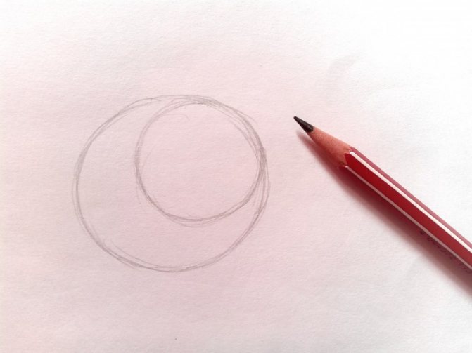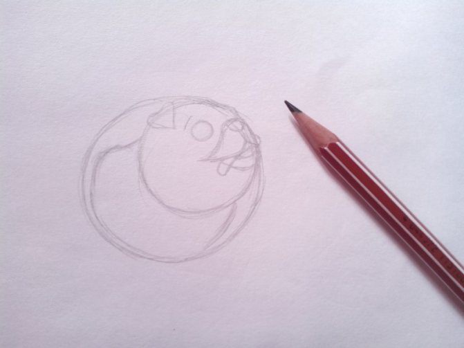 - Αρχικά σχεδιάζεται ένας μικρός κύκλος που γίνεται η βάση του κεφαλιού. Πριν από αυτό, πρέπει να λάβετε υπόψη το μέγεθος του φύλλου και του σχεδίου, ώστε η εικόνα του ζώου να χωράει πλήρως στο φύλλο.