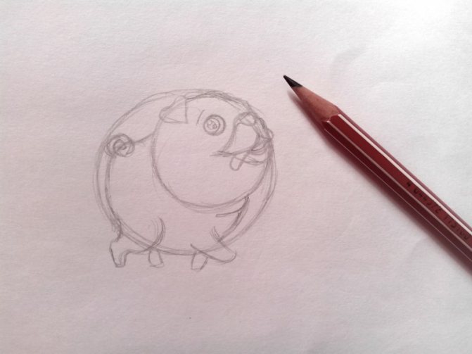 - Το επόμενο βήμα είναι να σχεδιάσετε κάθε λεπτομέρεια του περιγράμματος που δημιουργήθηκε. Αρχικά, όλα τα σχήματα που έχετε δημιουργήσει περιγράφονται με μια ενιαία γραμμή για να συνδυαστούν σε ένα συνολικό σχήμα σκύλου. Στη συνέχεια αρχίστε να σχεδιάζετε τις λεπτομέρειες του κεφαλιού: τα μάτια,