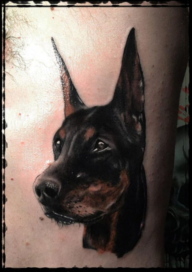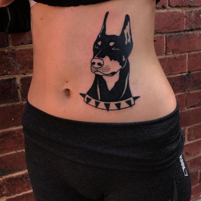 Είναι πολύ συνηθισμένο για τους ιδιοκτήτες ντόμπερμαν να κάνουν τατουάζ με το κατοικίδιό τους (δείτε τις φωτογραφίες στη γκαλερί). Είναι απαραίτητο να αισθάνεστε την παρουσία του ανά πάσα στιγμή, ένας φόρος αγάπης και σεβασμού για τον τετράποδο φίλο σας. Μερικές φορές είναι ένας τρόπος να θρηνήσουμε ένα νεκρό ζώο, ένας τρόπος να το θυμόμαστε για πάντα με τη μορφή ενός τατουάζ. Μια λεπτή, όμορφη φιγούρα Ντόμπερμαν σε οποιοδήποτε σημείο του σώματος είναι μια πολύ αποτελεσματική δήλωση στυλ τόσο για τους άνδρες όσο και για τις γυναίκες. Πολλοί το κάνουν για την απόλυτη ομορφιά και τη φαντασμαγορία τους, χωρίς να τους δίνουν κάποιο νόημα.