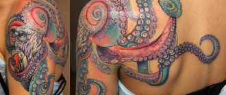 Στους άνδρες αρέσουν οι μεγάλες εικόνες, οπότε η περιοχή ή το μέρος του τατουάζ επιλέγουν το στήθος, την πλάτη, τον ώμο ή το αντιβράχιο. Η πλάτη είναι μια ευνοϊκή επιλογή εικόνας, που σας επιτρέπει να αποτυπώσετε τη δύναμη αυτού του μυθικού πλάσματος με απίστευτη λεπτομέρεια.