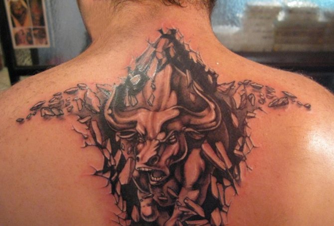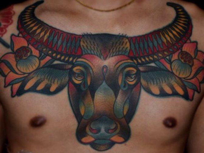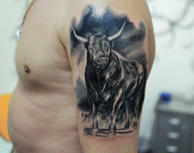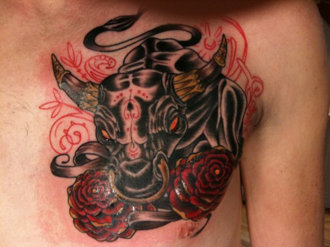 - Ταύρος από την ισπανική ταυρομαχία. Ένα τέτοιο τατουάζ δεν θα πρέπει να εφαρμόζεται σε άντρες, καθώς η σύνθεση θα σημαίνει την εξημέρωση του ανδρισμού. Ένας άντρας σίγουρα δεν χρειάζεται ένα τέτοιο "σωματικό μάντρα".