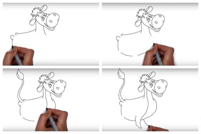 - Δοκιμάστε να σχεδιάσετε έναν ταύρο με βάση αυτά τα εργαστήρια σε διαφορετικές στάσεις: το ζώο ξαπλωμένο, ή να περπατάει ήρεμα, να τρέχει. Σε κάθε βήμα, το κύριο πράγμα είναι να ορίσετε το σωστό διάνυσμα για τα άκρα.