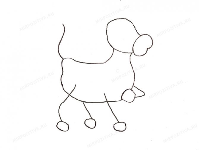 - Σχεδιάστε την ουρά του ζώου στο πίσω μέρος και τον μαστό στο πίσω πόδι.